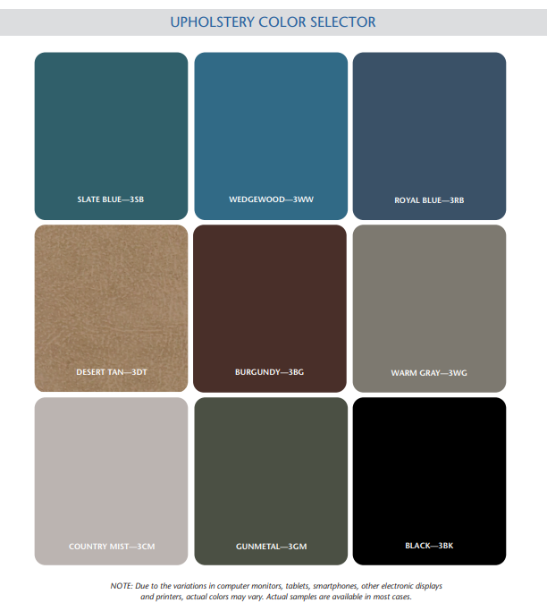 • Easy-clean, durable vinyl in a selection of colors