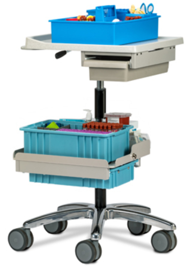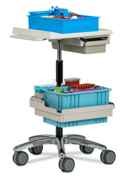 Clinton Industries Inc's carts and stands for phlebotomy allow for enhanced mobility and equipment accessibility during the blood drawing process.